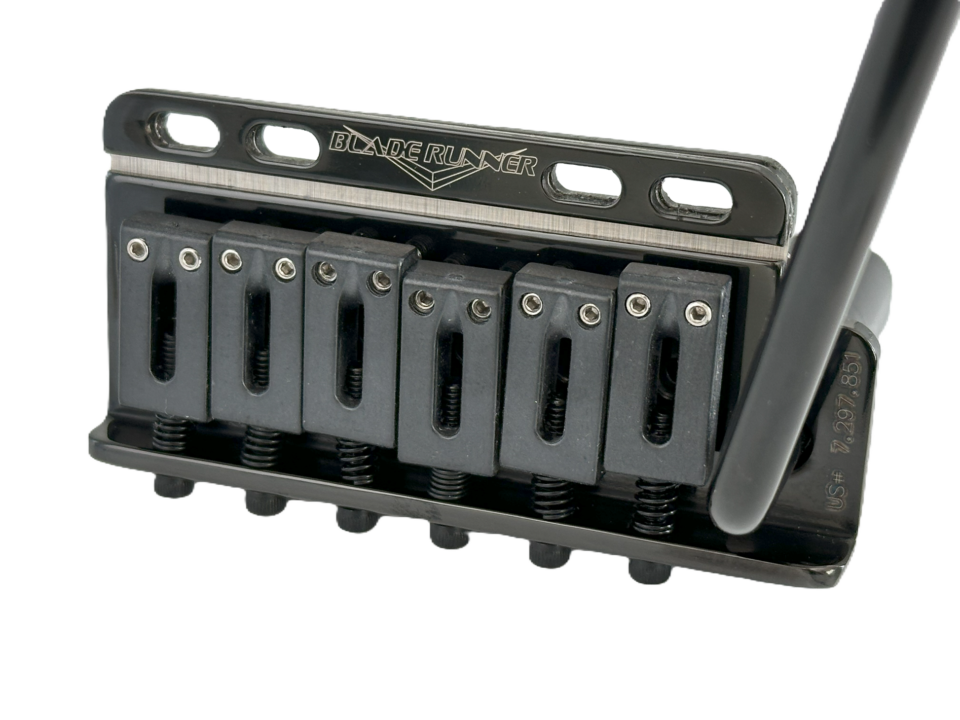 This Black Nickel Plated BladeRunner bridge replaces all 6-screw vintage tremolos made by Fender, Wilkinson and  Gotoh.  No permanent mods required!  A direct drop in for all 6 screw Strats and Strat style guitars. Easy installation in just minutes with absolutely no drilling or cutting!  We even "pre-intonate" the bridge for you.